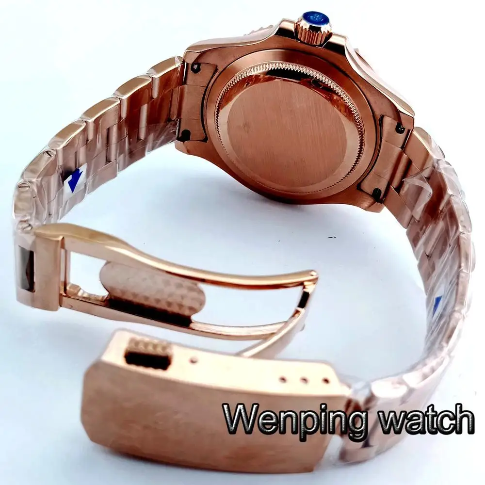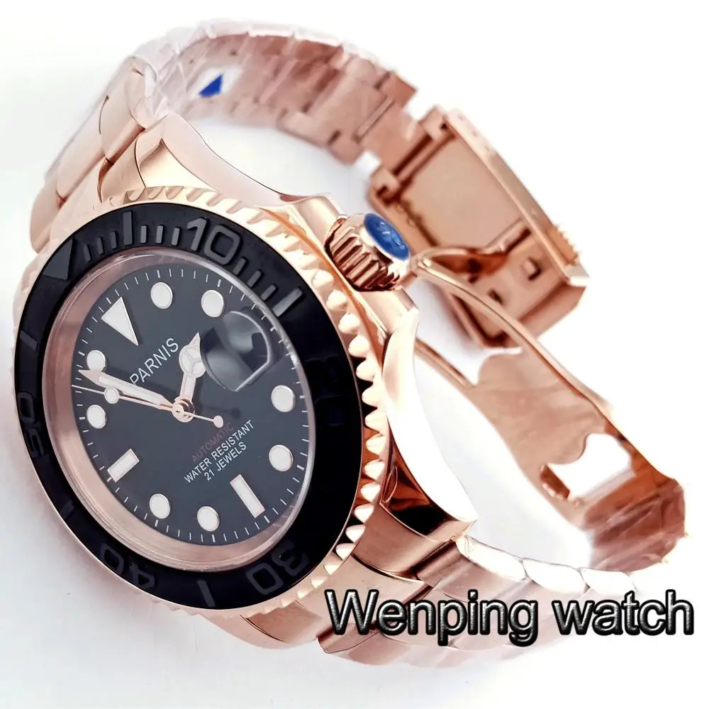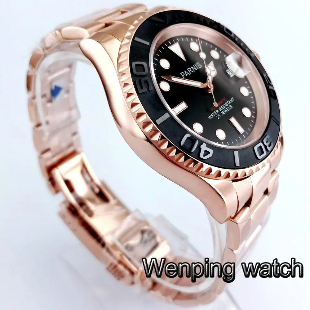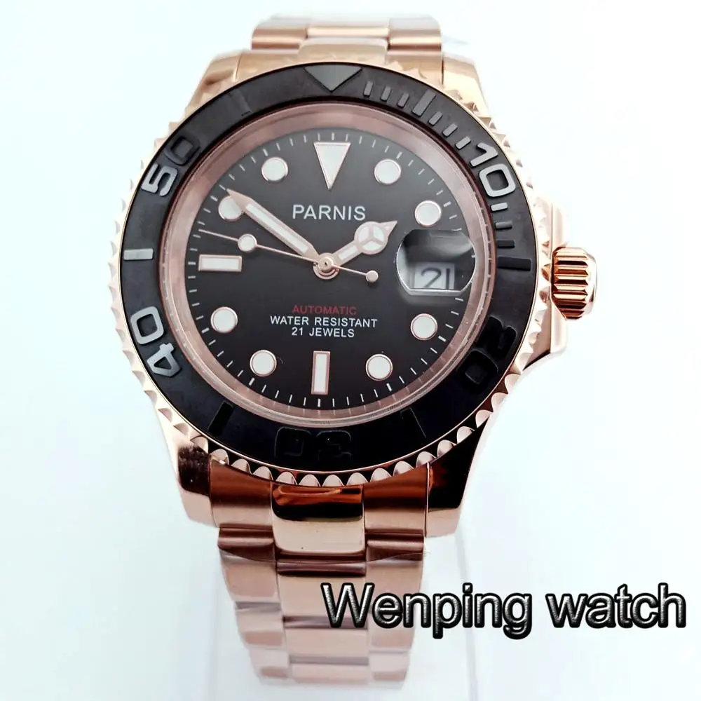 Parnis 40mm rose gold case sapphire glass sterile dial ceramic bezel luminous marks mens top luxury automatic watch