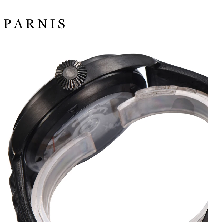 Parnis New 45mm Dial Automatic Mechanical Men's Watch Leather Strap Waterproof Men Wrist Watches Man Clock 2019 Top Luxury BrandBuy Now On Aliexpress