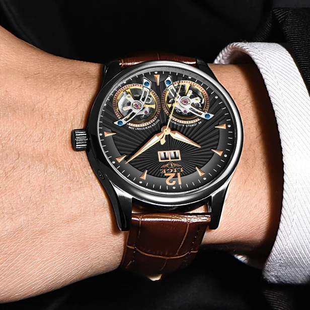 Reloj LIGE Double Tourbillon Switzerland men Watches Automatic Watch men Self-Wind Fashion Mechanical Wristwatch Leather Clock