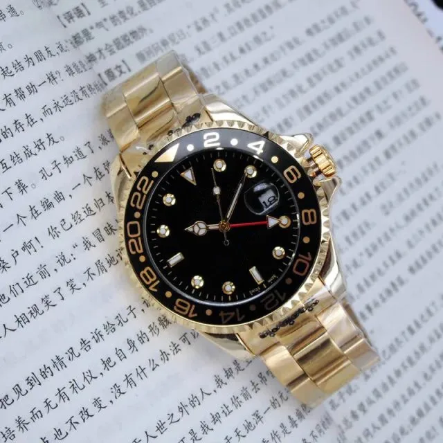 GMT relogio masculino men's watch luxury belt stylish black dial with calendar Bracklet folding buckle master men's gift watch