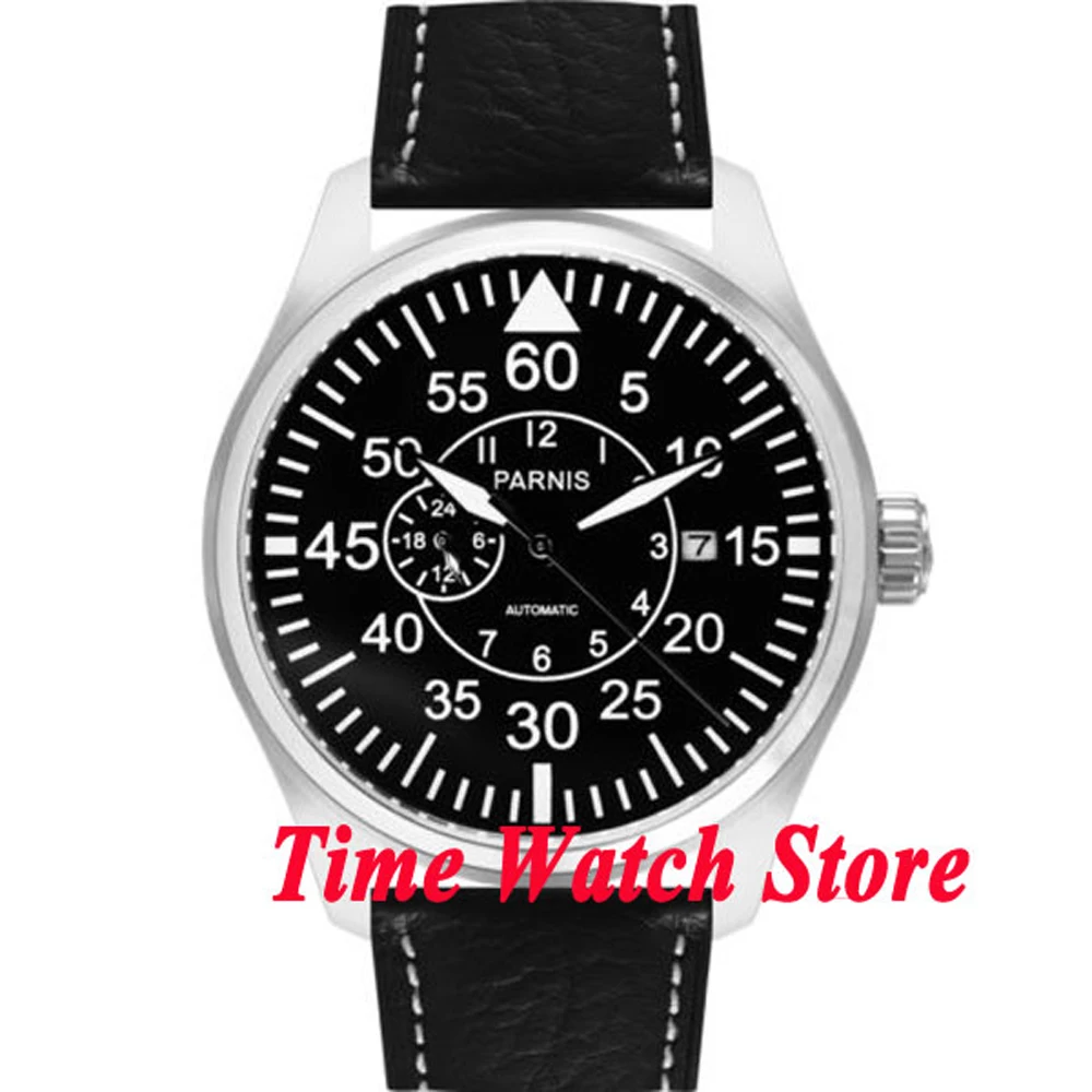 | Parnis 44mm japan Miyota automatic men's watch 24 hours black dial luminous sapphire glass waterproof 574 |