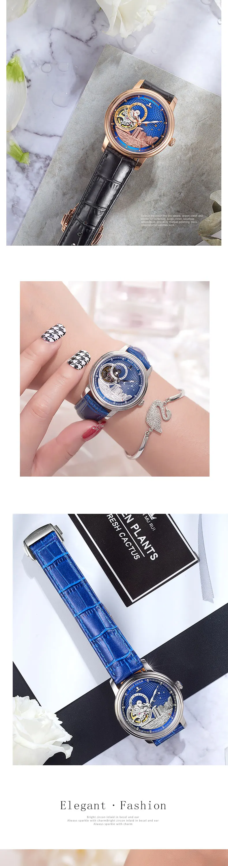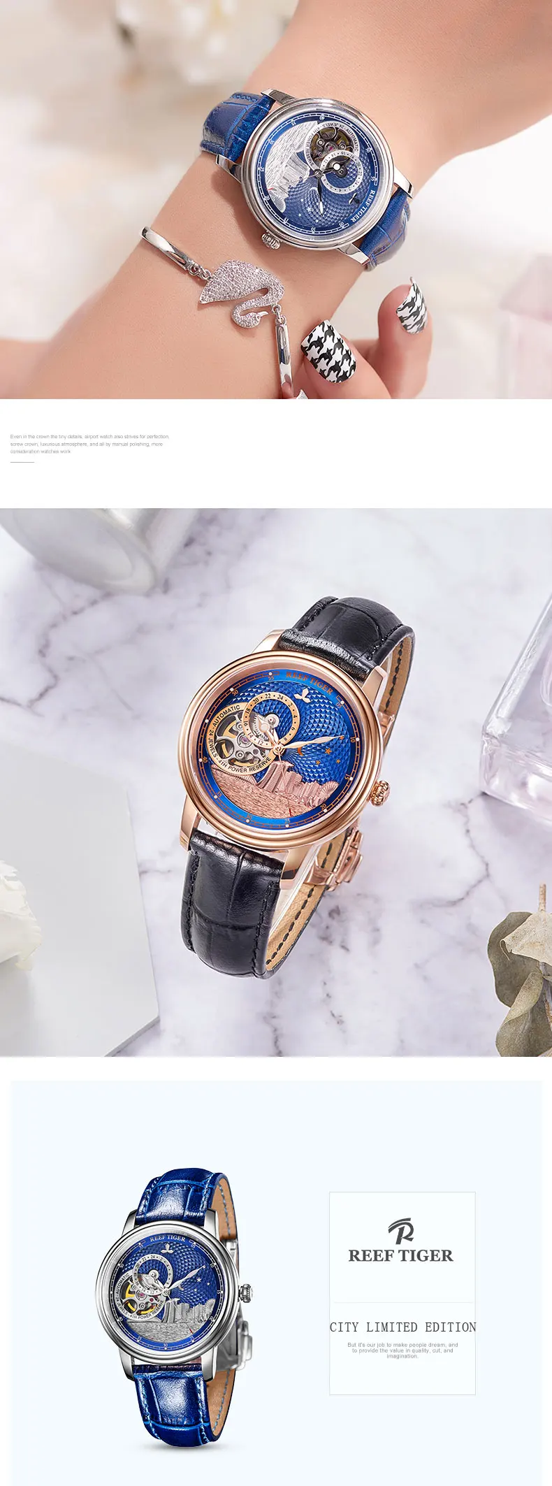 Reef Tiger/RT New Design Fashion Ladies Watch Rose Gold Blue Dial Mechanical Watch Leather Band Femme RGA1584Buy Now On Aliexpress