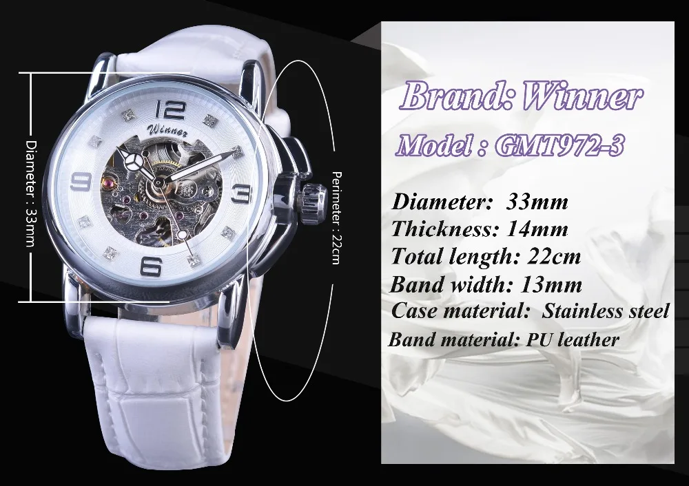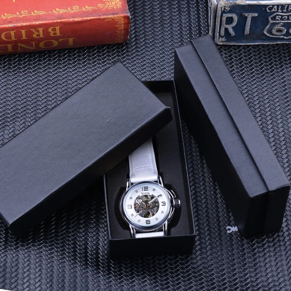 | Winner 2017 Ladies Diamond Display Women Top Brand Luxury White Simple Skeleton Transparent Case Automatic Mechanical Watches |
