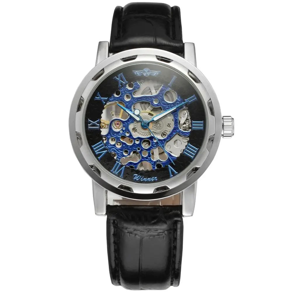 | WINNER Fashion trend men's and women's watches hollow creative dial leather strap automatic mechanical watches |