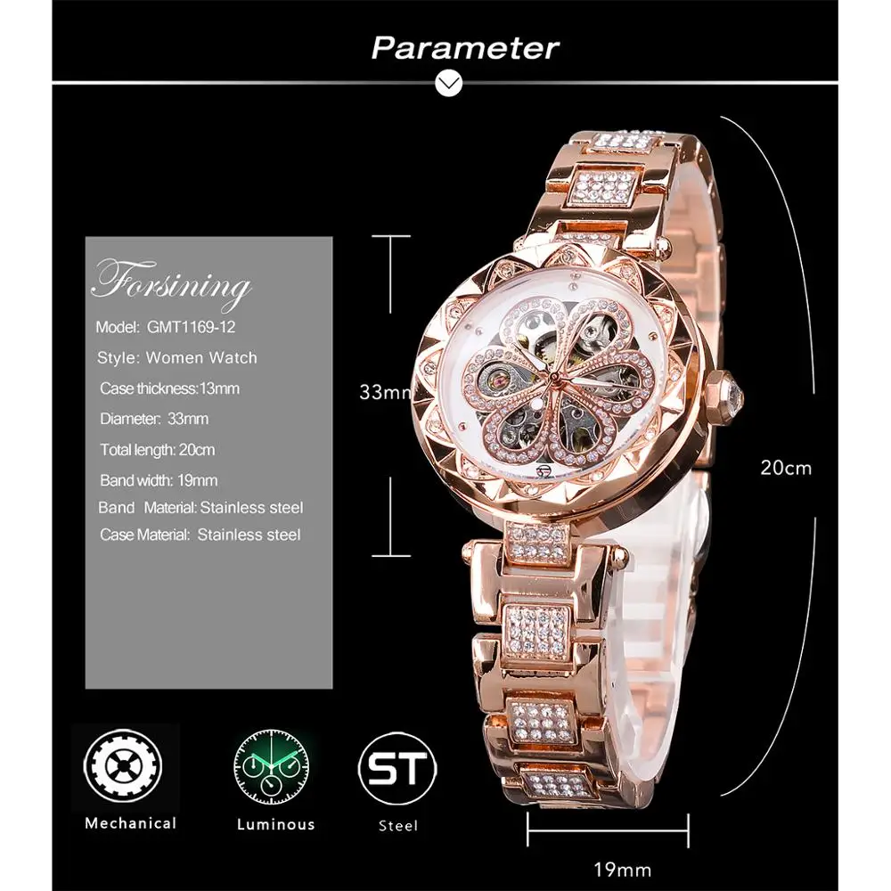 | Forsining Fashion Women Watch Top Brand Diamond Female Wristwatch Automatic Machanical Watches Waterproof Luminous Hands Clock |