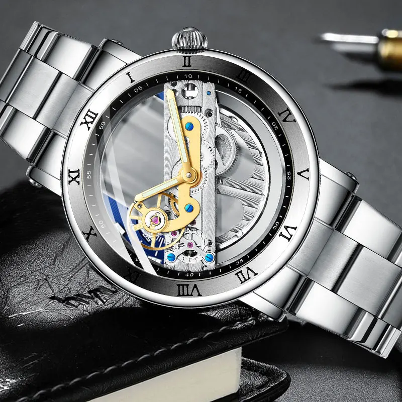 | FORSINING New Men Automatic Mechanical Watches Top Brand Luxury Stainless Steel Watch Skeleton Transparent Sport male WristWatch |