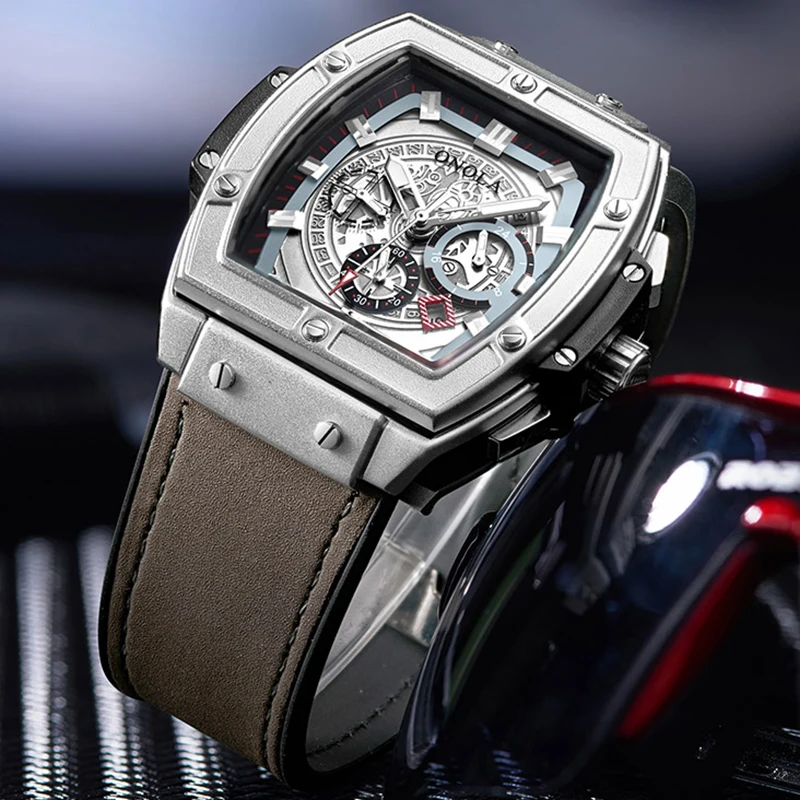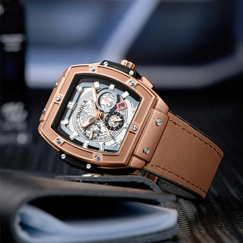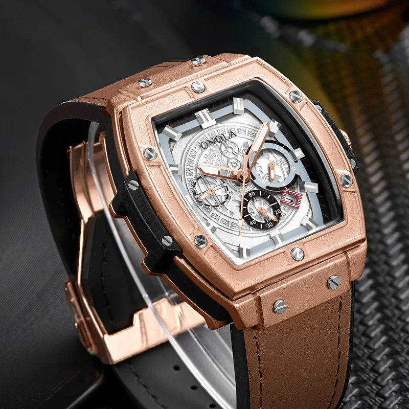 ONOLA tonneau square big quartz watch man 2019 Multifunction lumious wristwatch fashion casual cool original man watch
