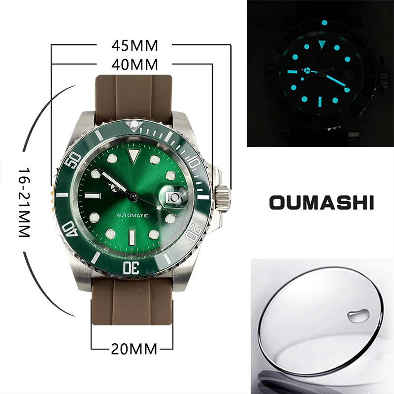 | OUMASHI 40MM automatic watches men 116610 brand luxury stainless steel sapphire 20BAR sport diver mechanical wristwatch |
