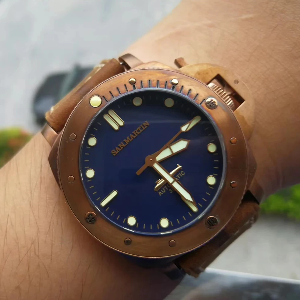 | San Martin New Men PAM00382 Automatic Watches Vintage Bronze diving Wrist watch Sapphire Glass 300m Water Resistant Male Watch |