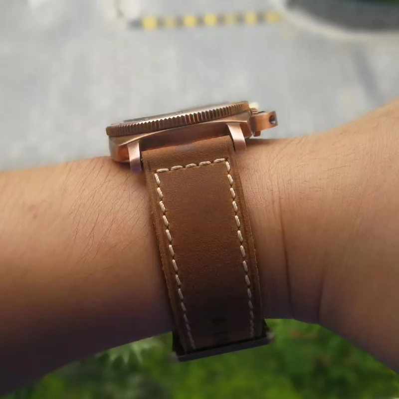 This watch's mirror features a sapphire crystal and a bronze diving chronograph ring. Equipped with PT5000 movement.(if you want with SW200 Movment ,please contact the seller) with genuine Leather strap, fine workmanship and comfortable to wear. The bronze diving ring, 300 meters deep water, ensures normal swimming and diving. The C3 is a super bright green feature, covered with retro sharks and other reliefs, very interesting. Brushed craft armor, beautiful workmanship. Whether it is outdoor or formal, it is a good choice.