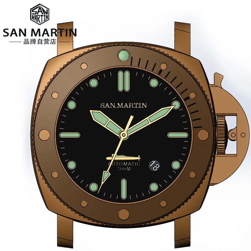 San Martin Luxury Bronze Sandblasted Diving Watch Men's Mechanical Watch Luminous Calendar 200 Meters Water Resistant