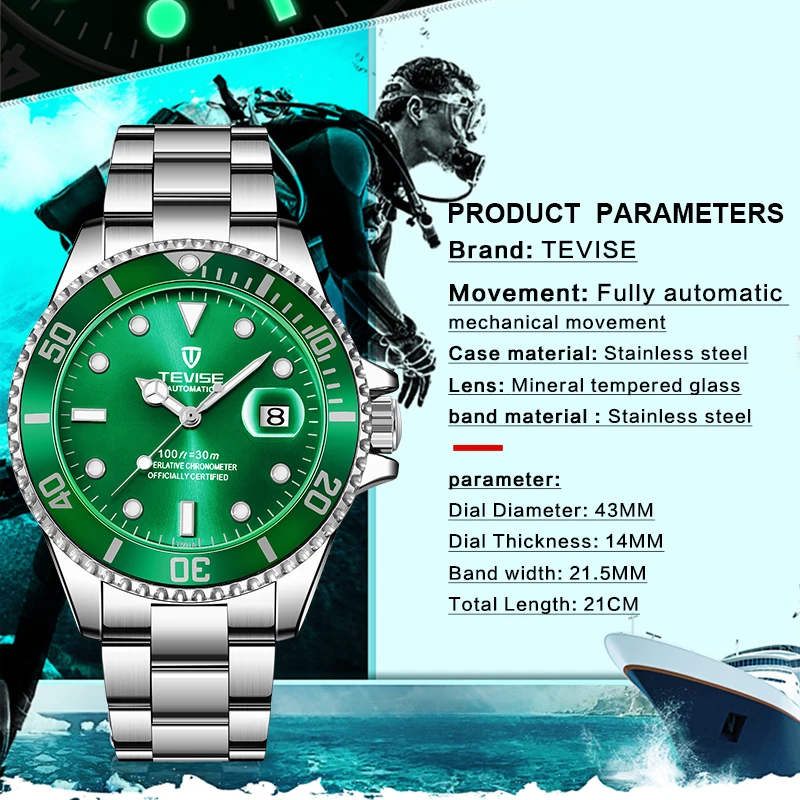 Fashion Brand TEVISE Green Water Ghost Men Stailness steel Automatic Mechanical/Quartz Watch Men Luminous Business WristwatchesBuy Now On Aliexpress