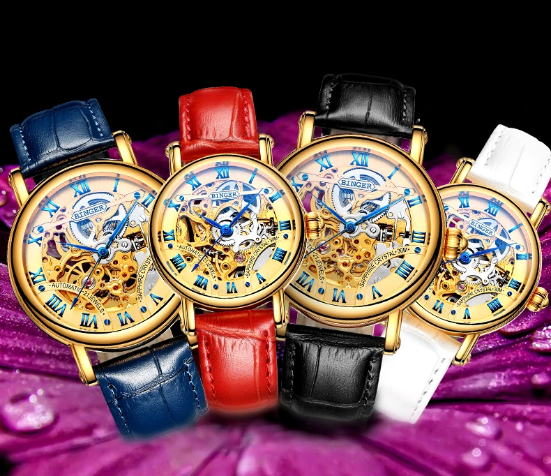 Automatic Mechanical Watch BINGER Couple Skeleton Women Watch Famous Brand New Fashion Men Wristwatch B-5066M relogio masculino