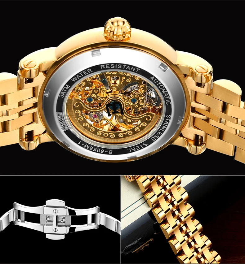 Couple Watch Men Brand Mechanical Watch Steel Automatic Stylish Classic Skeleton Steampunk Wristwatch BINGER relogio masculino