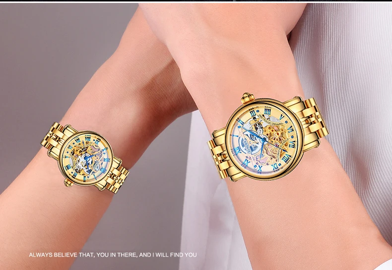 Couple Watches Top Brand Steel Mechanical Wrist Watch for Men and Women Orologio Uomo Tourbillon Skeleton Relogio Feminino Saats